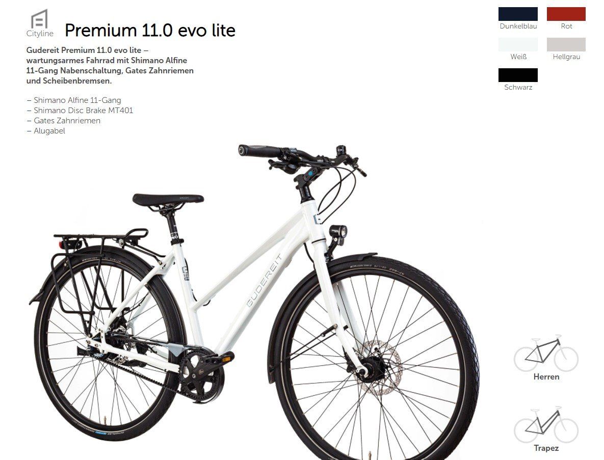 Die Wünsche unserer Kunden treiben uns an. Daher entwickeln wir unsere Kollektionen mit höchstem Anspruch an technische Leistungsfähigkeit, trendbewusstes Design und herausragenden Komfort. Qualität, die in jedem Rad zu spüren ist. Realisieren können wir diese hohen Erwartungen durch unser Team erfahrener Ingenieure. Sie treiben die Entwicklung voran und sorgen dafür, dass Gudereit Fahrräder immer die beste Performance bieten. Mit erstklassigen Partnern und der hauseigenen Montage in Bielefeld definieren wir, von der Entwicklung bis hin zum fertigen Rad, alle entscheidenden Schritte im Fertigungsprozess.